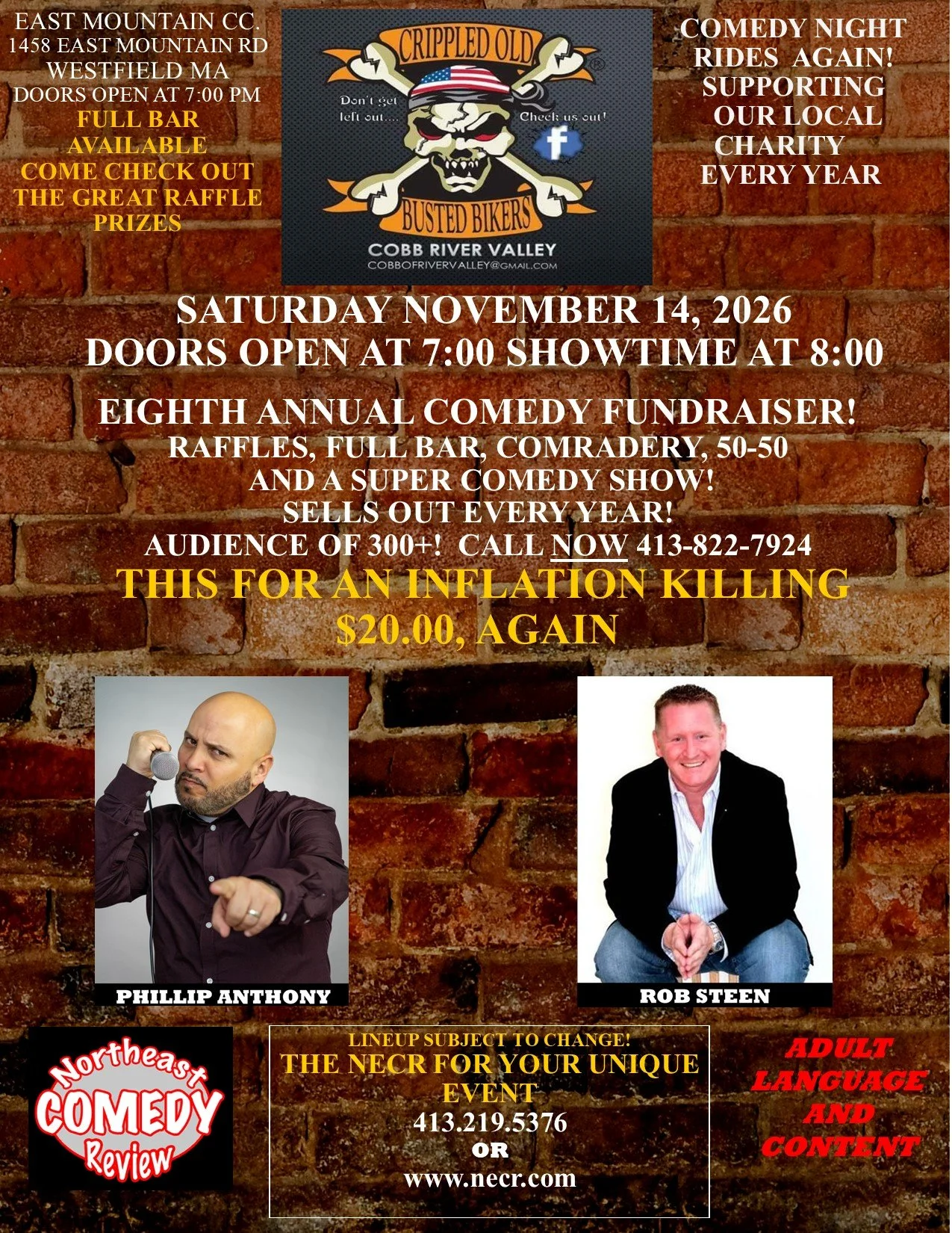The NECR will design promotional materials with your logo for every comedy event: